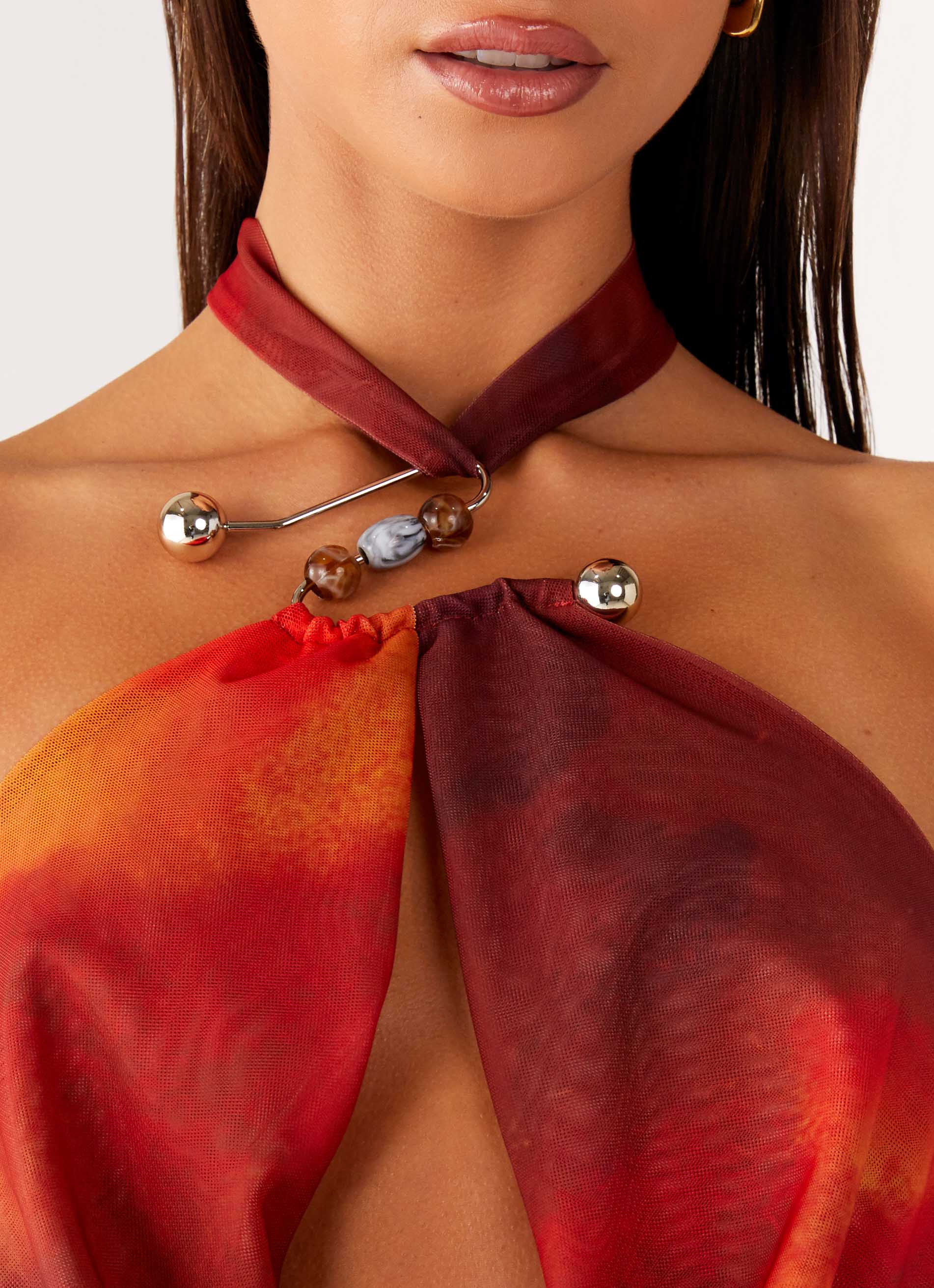 - Halter neckline