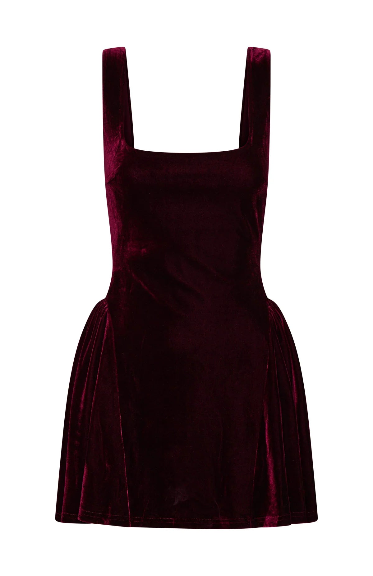 Louvre is in the air! The Midnight In Paris Velvet Mini Dress in Burgundy features thick shoulder straps and a square neckline that gracefully leads to a fitted waist, accentuating your silhouette. Designed with a voluminous skirt featuring a tulle underskirt detailing at the hips, corsetry-inspired lace-up back with invisible back zipper, hook and eye closure and fully lined, velvet material. Heels on, bag in hand, gold jewellery glowing, and own the moment.